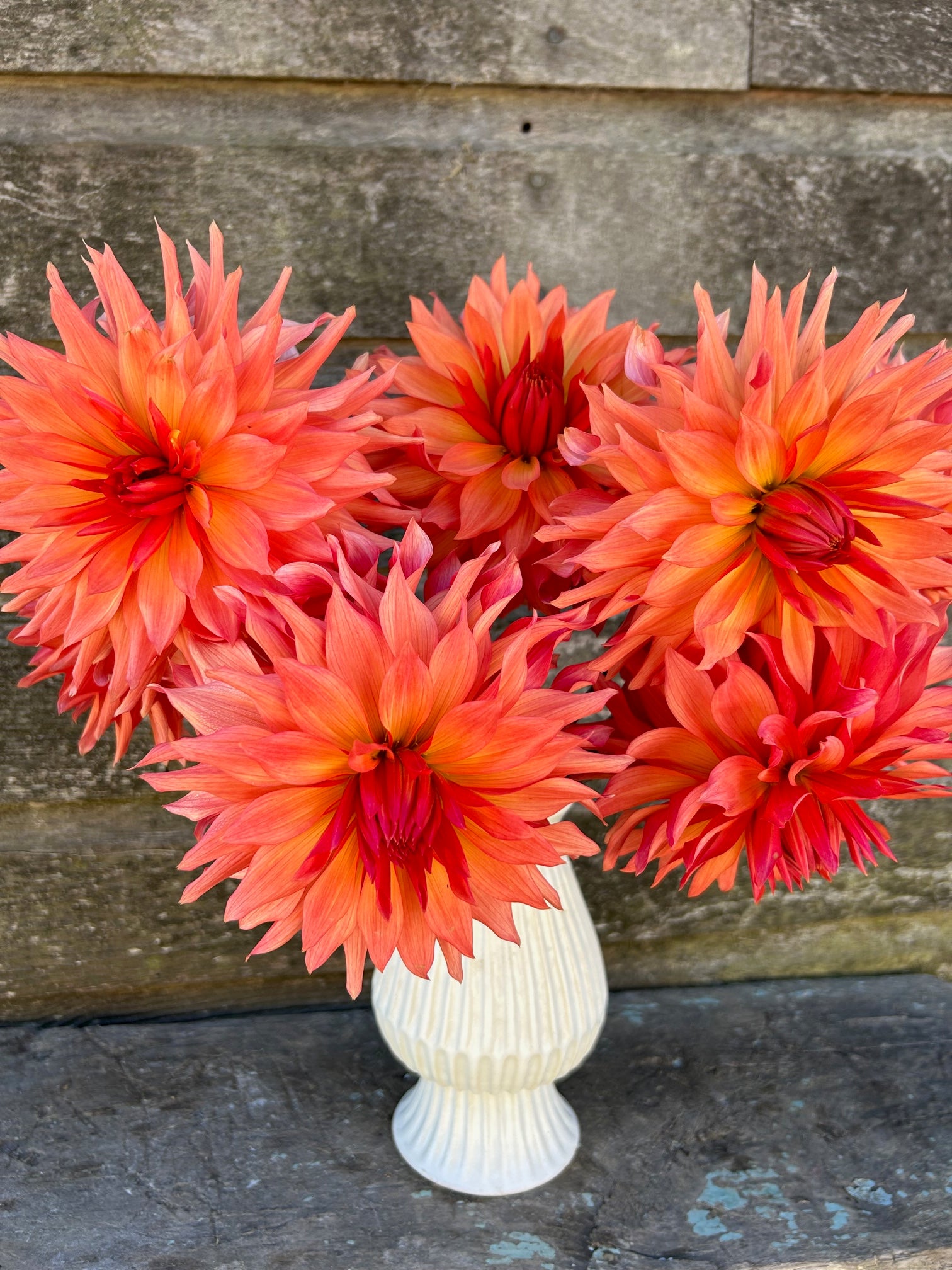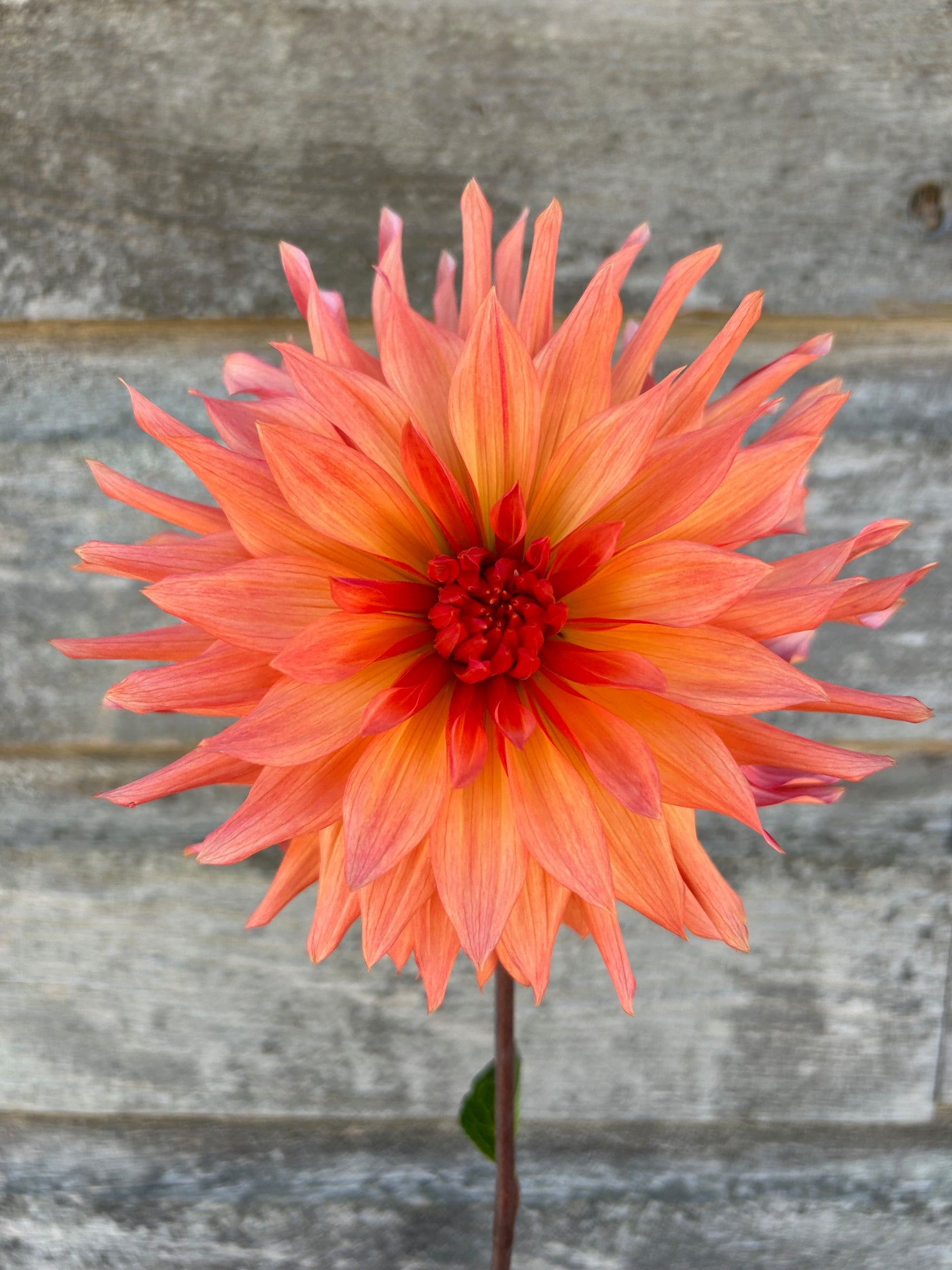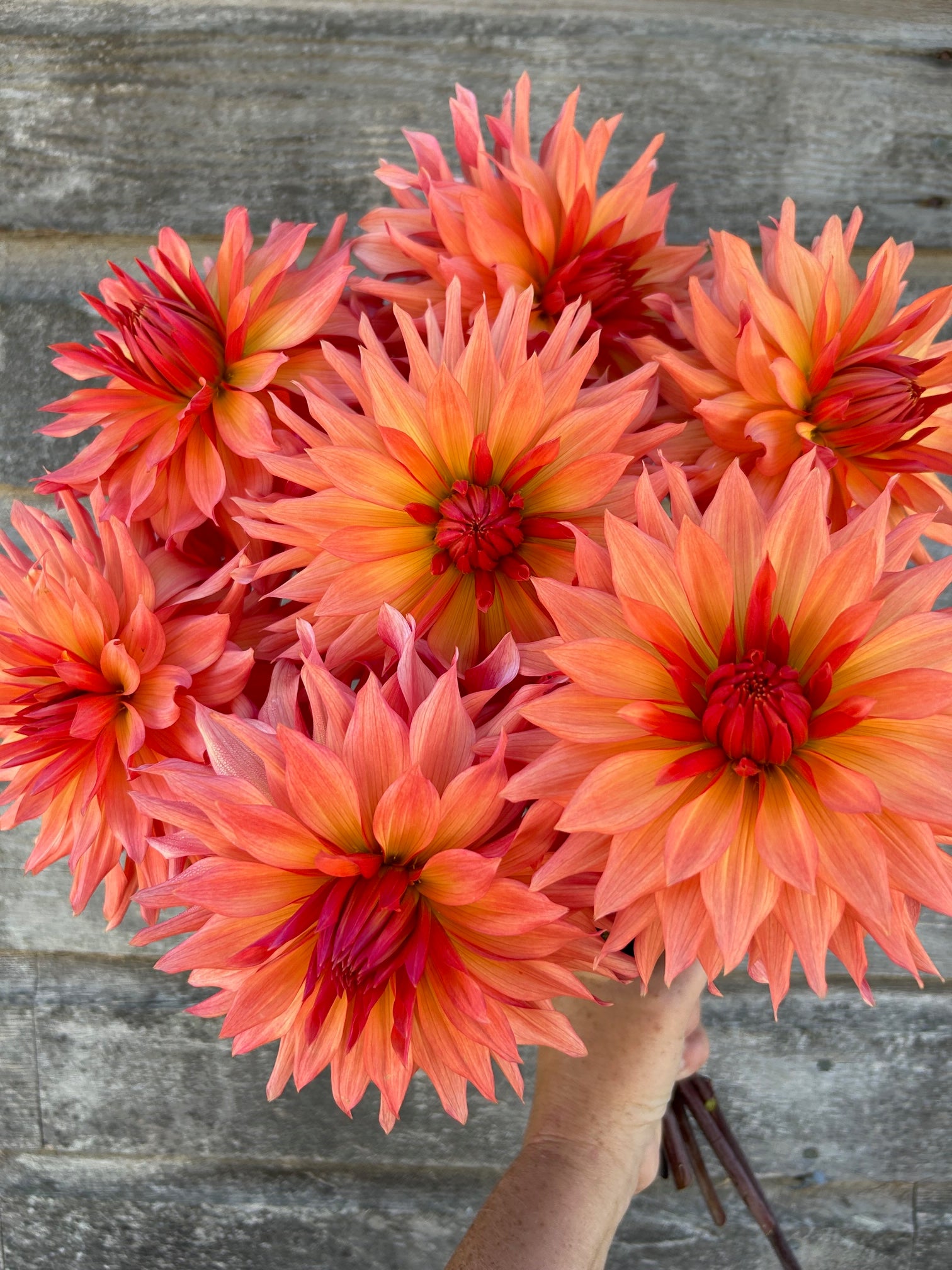 A gorgeous orange dinnerplate dahlia bred by Paul Bloomquist. This beauty is a standout in the garden. An extremely productive variety that pumps out the blooms all season long.