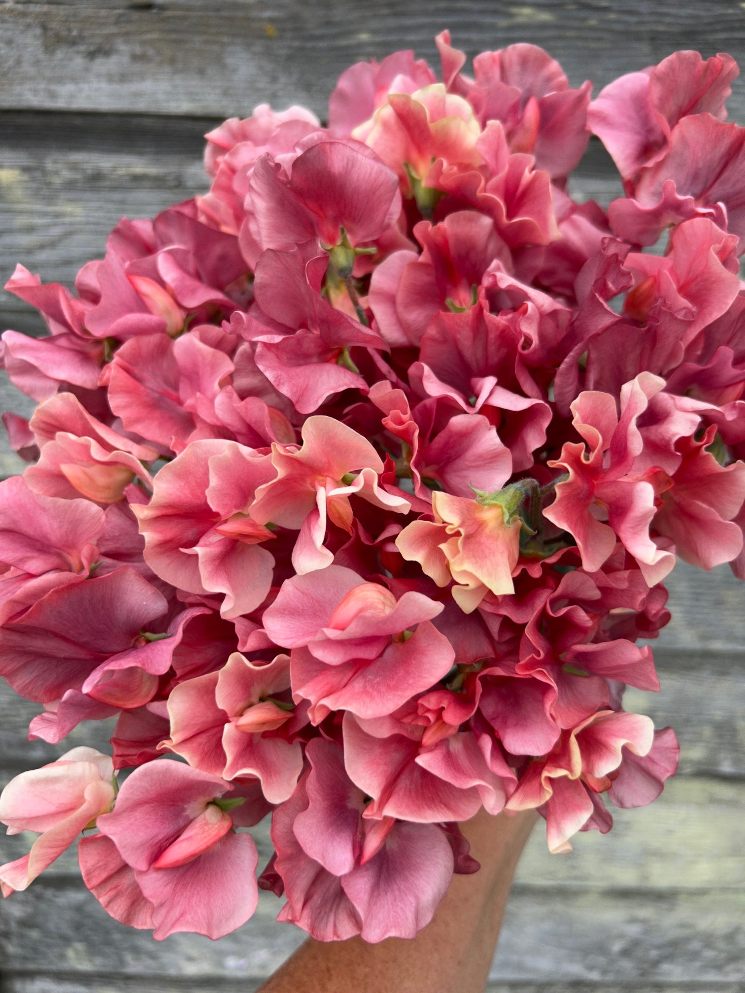 The sweet pea that everyone goes nuts over! A truly breathtaking variety that will literally change color right in front of your eyes. Blooms start out a faint peach and then turn into a warm coral before they change again into a dusty rose and finish as a smokey plum. I’ve honestly never seen anything like it before….. a must grow!